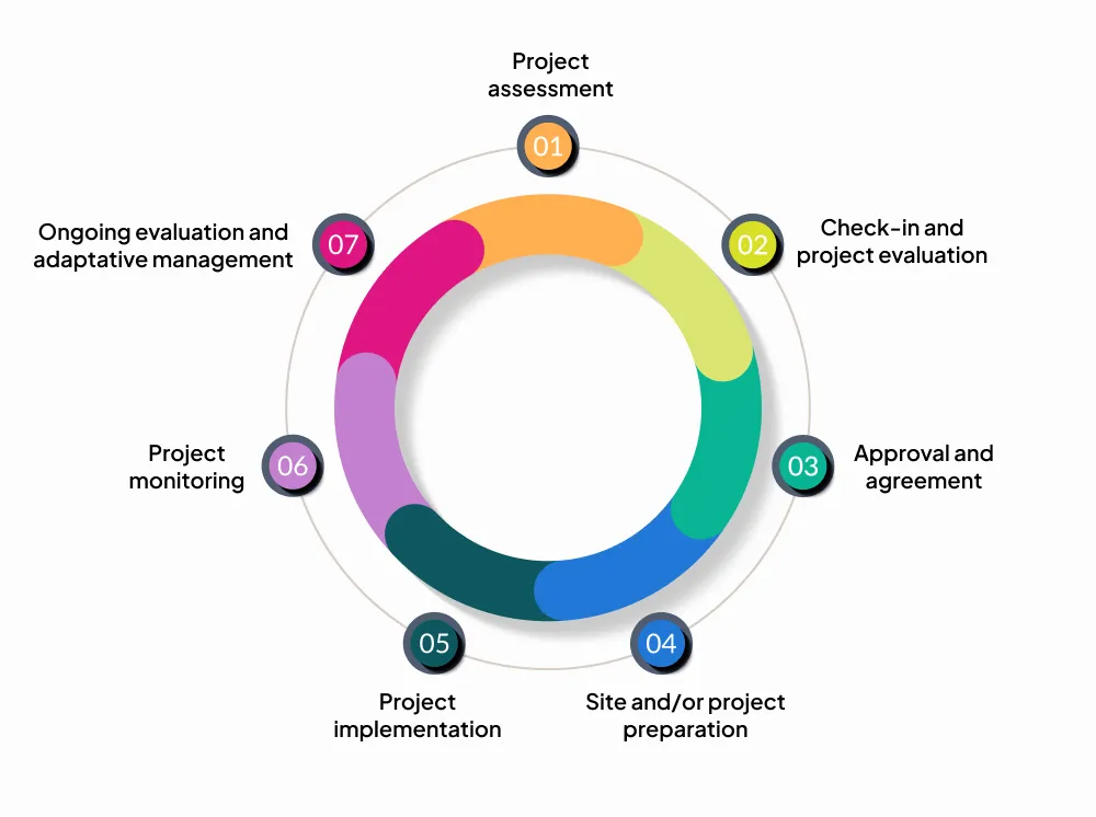 Our 7-step approach ensures that the right projects are selected and long-term impact is created. We work closely with our project partners to tackle challenges together and maximize impact.